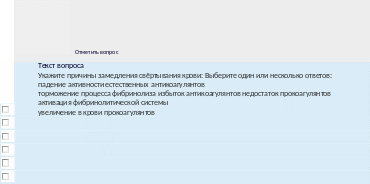 Текствопроса Внешниемеханизмысвертываниякрови:Выберитеодинилинесколькоответов: |