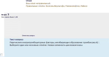 Отзыв Правильныеответы:наследственныйдефицитантитромбинаIII,системныйатеросклероз, дефицитпростациклина |