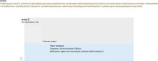 Текствопроса Лабораторныетестыпригеморрагическойтромбоцитодистрофии(болезньВиллебранда): Выберитеодинилинесколькоответов: |