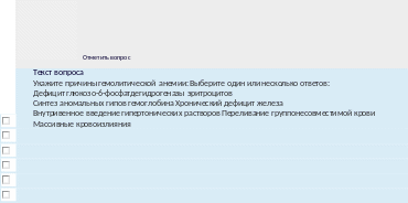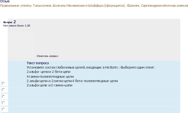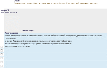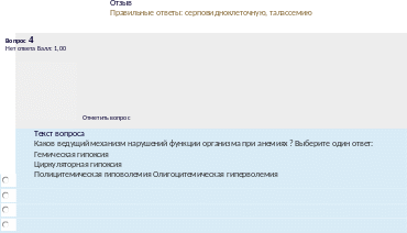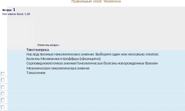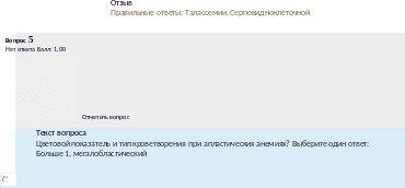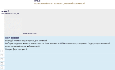 Отзыв Правильныеответы:Микросфероцитарной,Гемолитическойболезниноворожденных,Гемоглобинопатий |