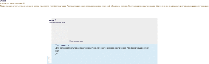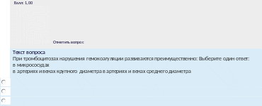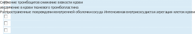 Текствопроса Укажитепатогенетическиефакторынарушениягемостазапринаследственныхтромбоцитопатиях: Выберитеодинилинесколькоответов: нарушенияреакциидегрануляциитромбоцитовнарушениесинтеза простациклина дефицитплотныхгранулIиIIтипатромбоцитов отсутствиевмембранахтромбоцитовгликопротеинов |