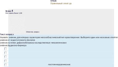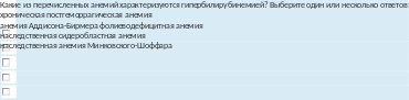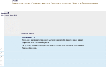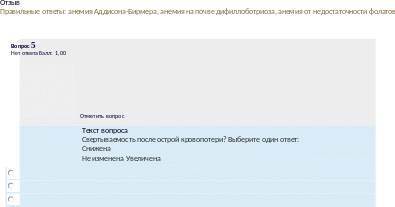 Отзыв Правильные ответы: наследственная анемия Минковского-Шоффара, анемия Аддисона-Бирмера, фолиеводефицитная анемия |