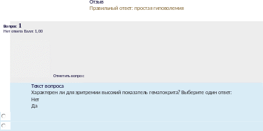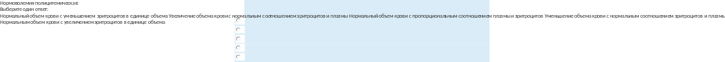 Текствопроса Эритроцитознаблюдаетсяпри: Выберитеодинилинесколькоответов:ВрожденномпорокесердцаОтравлении угарным газомГемоглобинопатии Горнойболезни |