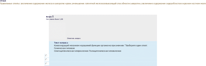Отзыв Правильныеответы:Артериальнаягипоксемия,Кровопотеря |