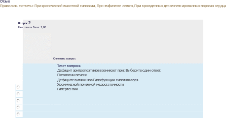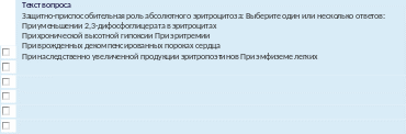 Текствопроса Примерполицитемическойгиповолемии: Выберитеодинилинесколькоответов:Остраякровопотеря Обширные ожогиГорная болезньГемолитическаяанемия Токсическаядиспепсия |