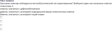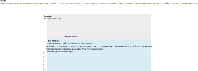 Текствопроса Укажитегематологическиепризнакихарактерныедлянаследственнойсидеробластнойанемии: |