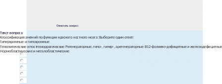 Отзыв Правильныеответы:анемия,связаннаясрезекциейподвздошнойкишки,анемия,связаннаясрезекциейтощейкишки,анемия,связанная сдифиллоботриозом |