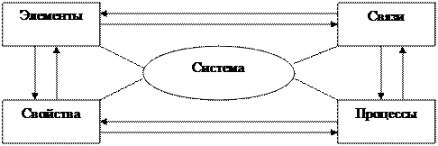 В наших рассуждениях под «системой» будем понимать совокупностьэлементов, связей между этими элементами, процессов, проходящих как в самих элементах, так и в связях и свойств,которыми обладает любая система.