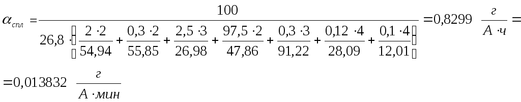 Электрохимический эквивалент сплава рассчитывается по формуле