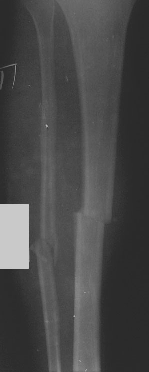 Общее состояние средней степени тяжести. Сознание ясное. Кожные покровы, вне левой голени, бледно-розовые. В легких дыхание везикулярное, хрипов нет. Частота дыхательных движений 18 в минуту. Тоны сердца приглушены, ритм правильный с частотой 82 удара в минуту. Пульс удовлетворительного напряжения и наполнения. Артериальное давление 130 и 80 мм рт. ст. Живот не вздут, симметричный, участвует в акте дыхания, при пальпации мягкий, не напряженный, безболезненный. Симптомов раздражения брюшины нет.
