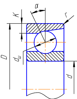 Пример обозначения подшипника средней серии с d = 35 мм, D = 72 мм, B = 17 мм и α = 26°: Подшипник 46207 ГОСТ 831-75