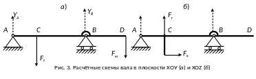 Согласно схеме на рис. 4 построены расчётные схемы вала в плоскости ХОУ и ХОZ (рис.3). АС=l1, СВ=l2 , BD=l3