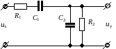 Составить дифференциальное уравнение и передаточную функцию, описывающие передаточные свойства схемы. Записать уравнение и передаточную функцию в стандартной форме. Рассчитать численные значения коэффициентов.