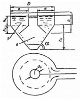 - сливной патрубок с диафрагмой; 3 - входной патрубок;