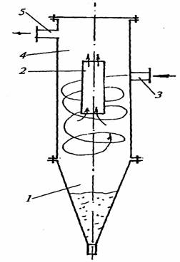 Рис. 12. Схема напорного гидроциклона: 1 - сменная насадка-сгуститель;