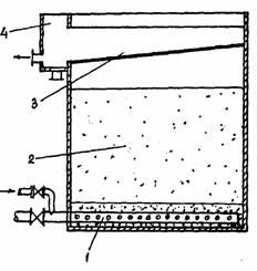 коагулянтом; 2 - фильтрующая загрузка, в которой движется сточная вода снизу