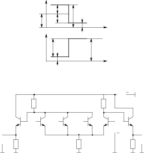 При уменьшении напряжения Uвх относительно Е0 уменьшается ток ik1, растет напряжение Uk1, растет ток ik0, уменьшается напряжение Uk0 . При некотором Uвx < U0 транзистор VT1 закрывается и ток Iэ течет только через транзистор VT0. В этом случае Uk0 = Eп - IэRk0: Uk1 = Еп. Таким образом, при изменении Uвх на некоторое значение 2 U симметрично относительно Е0, транзисторы переключаются (рис. 2.23).