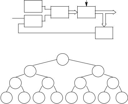 Принцип поразрядного кодирования состоит в формировании цифровым способом эталонного напряжения Uэ путем последовательного приближения его к входному напряжению Uвх. Этот принцип поясняется структурной схемой (рис. 5.5, а) и графом переходов (рис. 5.5, б), который отражает алгоритм управления состояния регистра памяти (РП), необходимый для реализации метода последовательного приближения эталонного напряжения, снимаемого с выхода ПКН.
