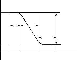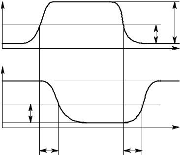 Быстродействие в логических элементах определяется величиной задержки перепада напряжения при переходе его через ЛЭ. Эта задержка определяется наличием некоторого порога срабатывания элемента, инерционностью полупроводниковых приборов, влиянием паразитных емкостей. Она обычно измеряется на уровне, равном половине величины перепада и оказывается различной для положительного (t3+) и отрицательного (t3–) перепадов (рис. 2.12).