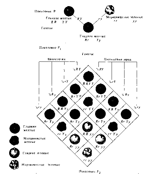 /16 (rr yy) = 1/16 морщинистых и желтых семян.