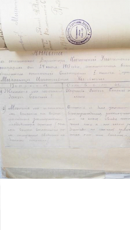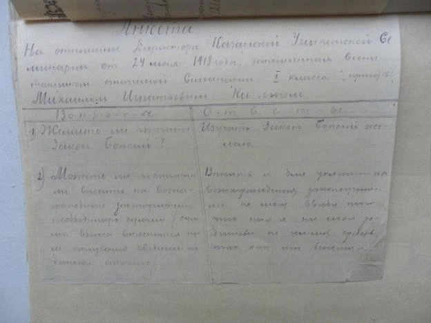 Вот такой формальный опрос был проведен в Казанской учительской семинарии.