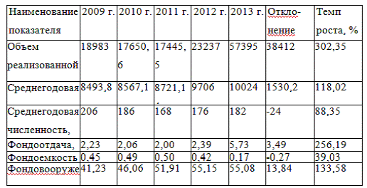 Данные таблицы 6 говорят о возрастании цены основных производственных средств за 2009-2013 гг. на 1530,2 тысяч рублей или же на 18%.