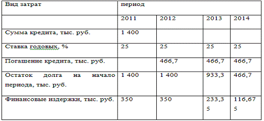 Таблица 10. Кредитный план