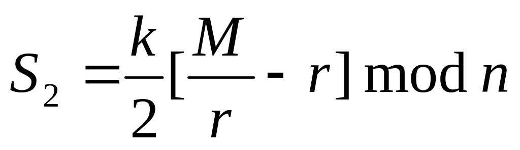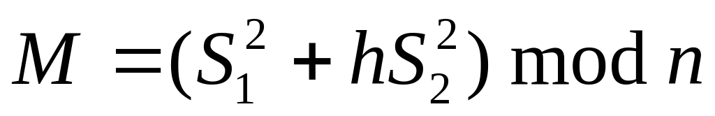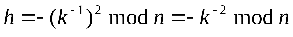 После получения от пользователя В значения S, используя расширенный алгоритм Евклида, пользователь А вычисляет для числа k мультипликативно обратный элемент (k–1) в поле вычетов по модулю n и формирует подпись пользователя В к сообщению M: S = k 1S = k 1kM d = M d (mod n).