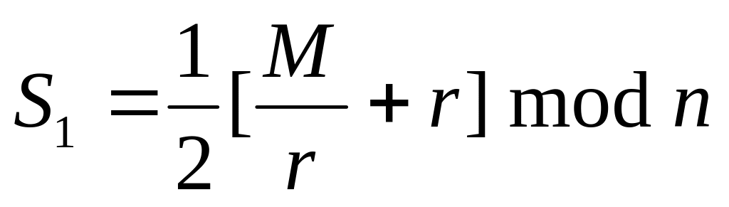 Для вычисления подписи (S1, S2) к сообщению M выбирается случайное число r, такое, что r и n являются взаимно простыми. Затем используются соотношения: