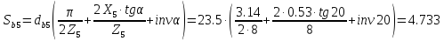 S5 = 0.5m + 2mX5tg = 0.5·3.14·3+2·3·0.53·tg20=5.86 мм.,