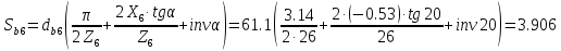 S6 = 0.5m + 2mX6tg = 0.5·3.14·3+2·3·(-0.53)·tg20=3.55 мм.