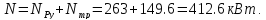 Кинетическая энергия механизма равна сумме кинетических энергий звеньев с заданными массами: