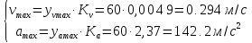 vmax= 0,294 м/с, аmax=142,2 м/с2.