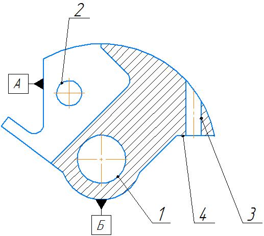К данной детали применимы базы: база А для обработки дефектов №1, 2, 3, база Б для обработки дефекта №4. Базы представлены на рисунке 1.1.