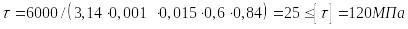 Таким образом условие прочности по условию равнопрочности резьбы на срез и стержня винта на растяжение выполняется.