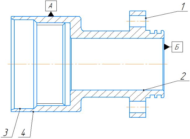 К данной детали применимы базы: база А для обработки дефектов №1, 2, 3, база Б для обработки дефекта №4. Базы представлены на рисунке 1.1.