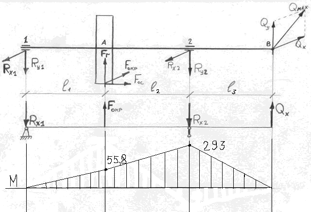 Fокр=3418 Н l1= l2=57 мм l3=87мм