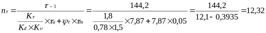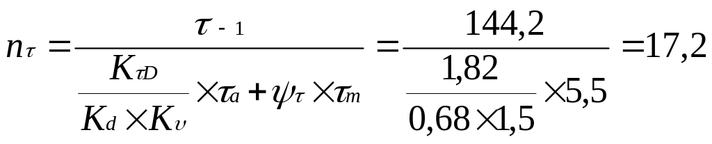 Коэффициент запаса прочности по касательным напряжениям: