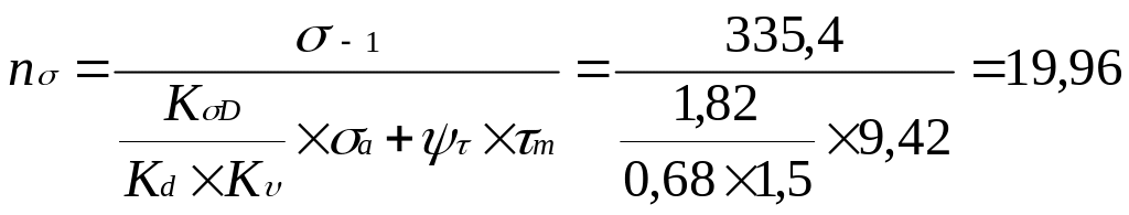 Коэффициент запаса прочности по нормальным напряжениям изгиба:
