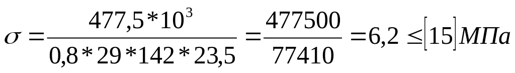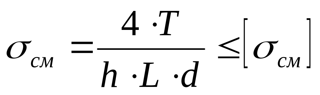 Расчёт шпонки на смятие