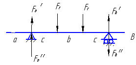 2) Радиальная нагрузка на опоры вала: