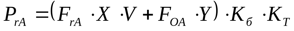 где FOA=0 (нет осевой нагрузки); Х=1 при вращающимся внутреннем кольце подшипника относительно нагрузки коэффициент смещения V=1.