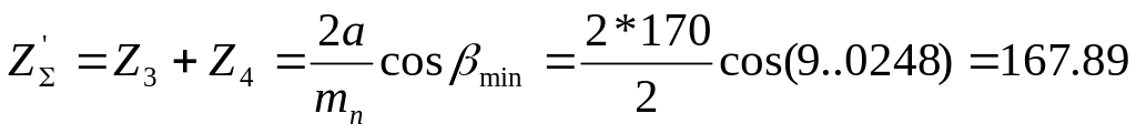 6. Суммарное число зубьев и угол наклона зуба для косозубых колес: