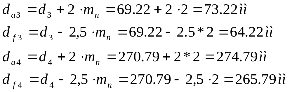 13. Диаметры окружностей вершин и впадин зубьев: