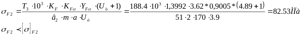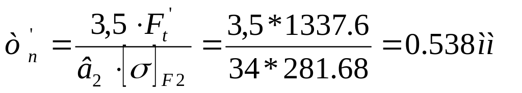 Напряжение в опасном сечении зуба колеса: