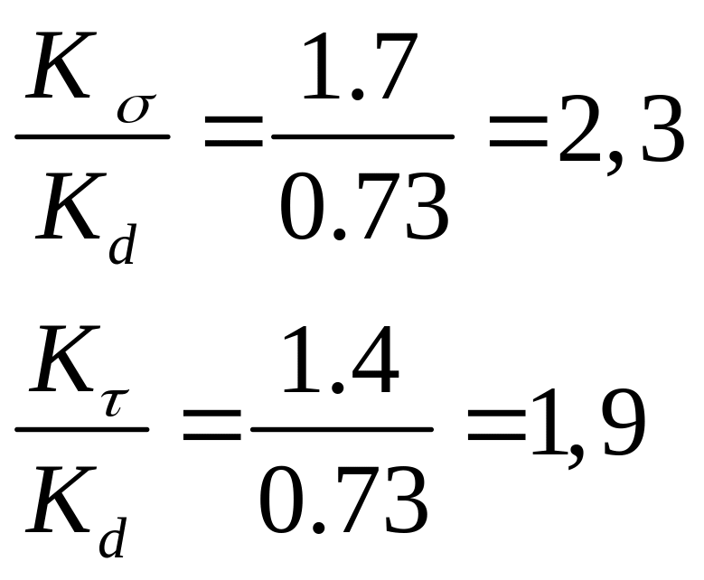 σ-1= 480 МПа и τ-1= 260 МПа - пределы выносливости гладких образцов при симметричном цикле изгиба и кручении;