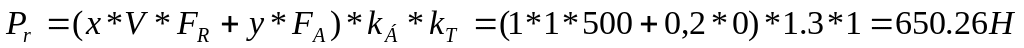 Определяем значение коэффициента радиальной динамической нагрузки x=1 и коэффициента осевой динамической нагрузки y=0,2.
