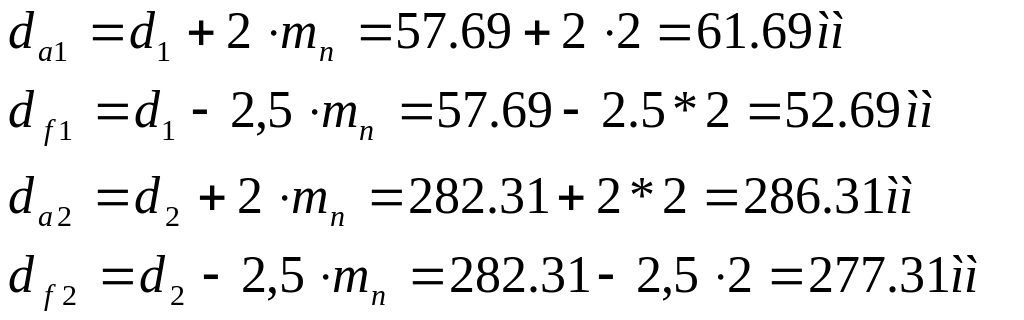 11. Диаметры окружностей вершин и впадин зубьев:
