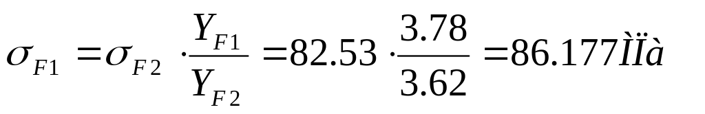 Напряжение в опасном сечении зуба шестерни: