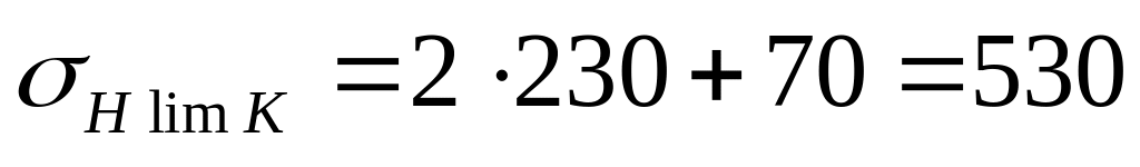 Предел контактной выносливости рассчитывается по формуле из таблицы 8.8, [3]: